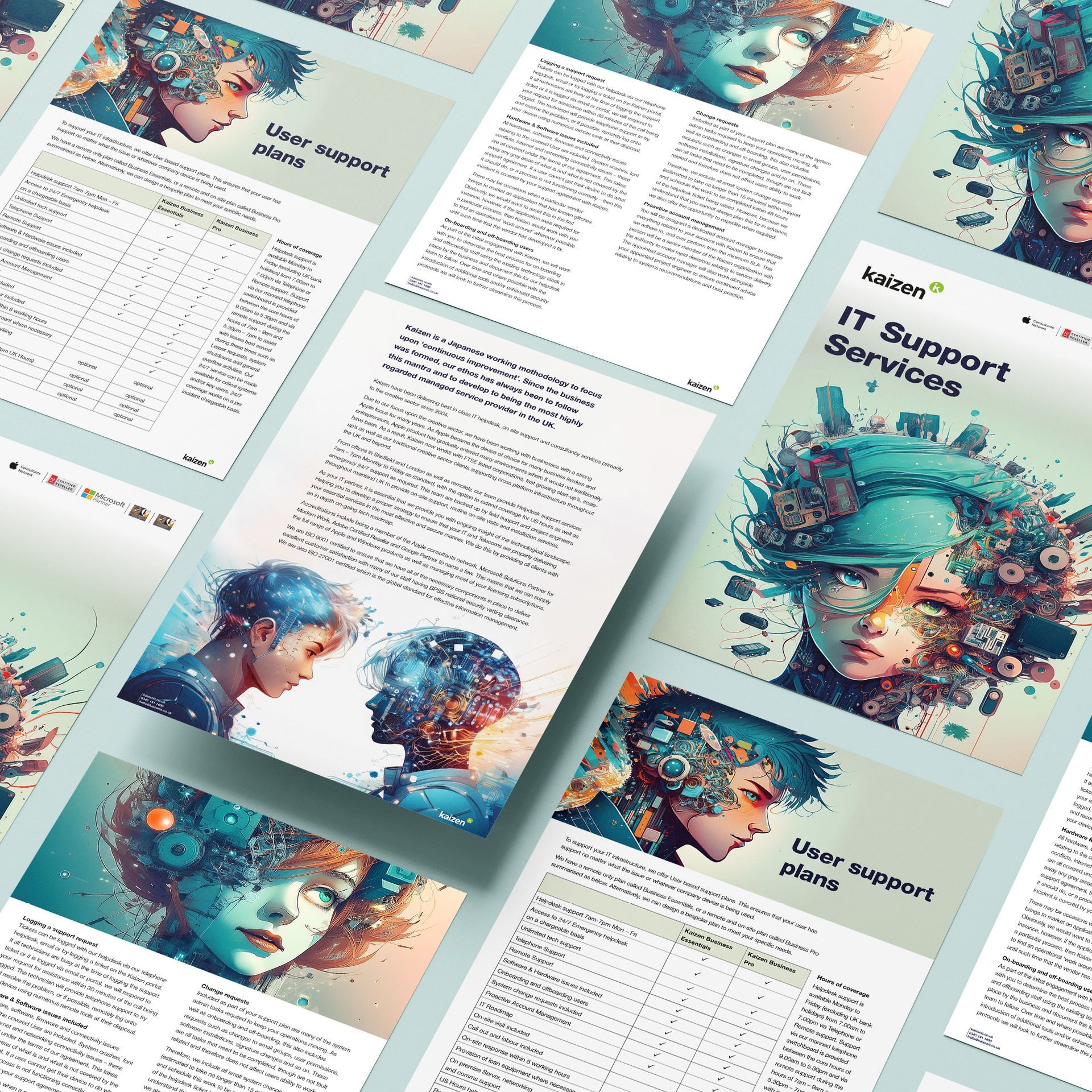 The result was a modernised brand identity that retained Kaizen's unique personality. By carefully evolving rather than revolutionising their visual language, we ensured brand recognition remained strong whilst providing the versatility needed for diverse communications. The updated palette of green, blue and orange hues brought a contemporary edge to their materials, helping Kaizen maintain their position at the forefront of the IT sector.